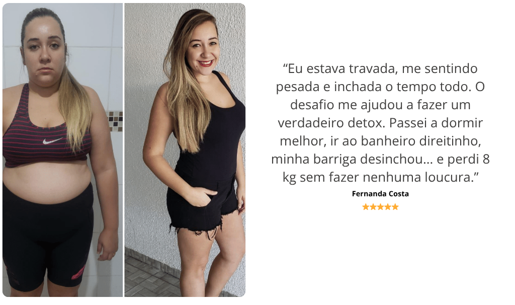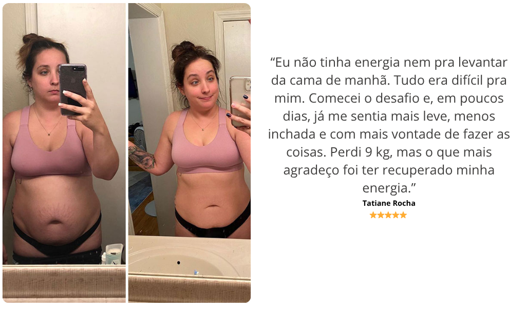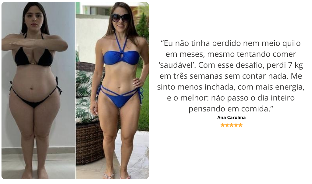 “Achei que ia ser mais uma dieta que eu começava e largava. Mas esse desafio me surpreendeu. Me senti acompanhada o tempo todo e segui o passo a passo sem ficar louca. Perdi 9 quilos em três semanas. Dessa vez, eu consegui.”