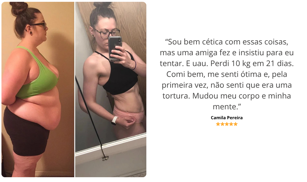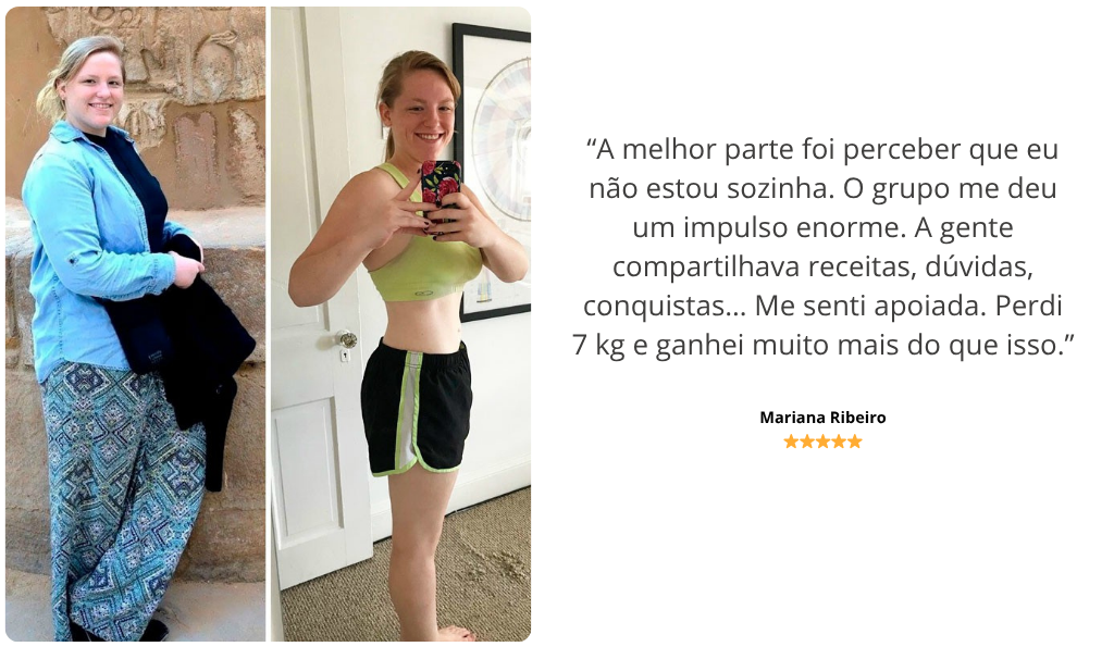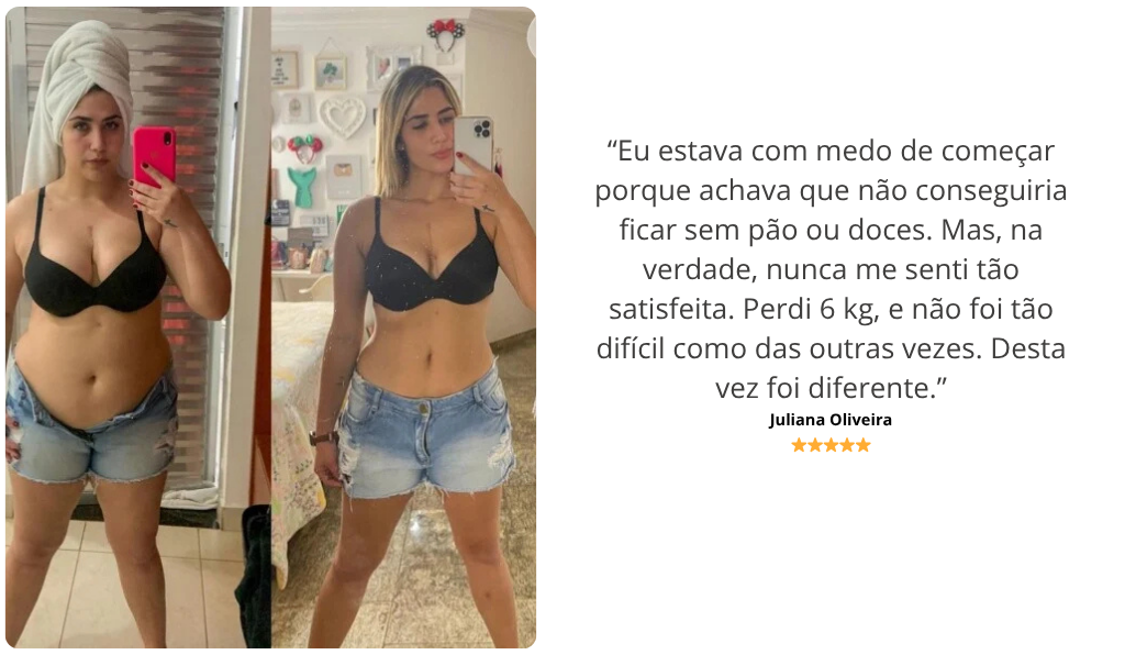 “Trabalho o dia todo, tenho dois filhos e zero tempo. Achei que não ia conseguir seguir nada, mas tudo era tão claro e prático que perdi 7 quilos sem estresse. Comia bem, sem fome, e não precisei mudar minha rotina.”