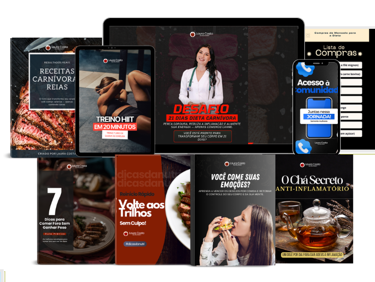 Laura criou o Desafio Dieta Carnívora 21D para transformar tudo o que aprendeu em um caminho claro, realista e guiado — para que outras mulheres não precisem esperar 10 anos para encontrar uma solução, como aconteceu com ela.
